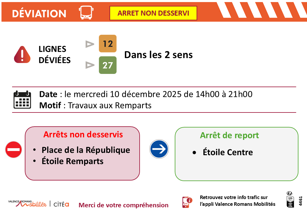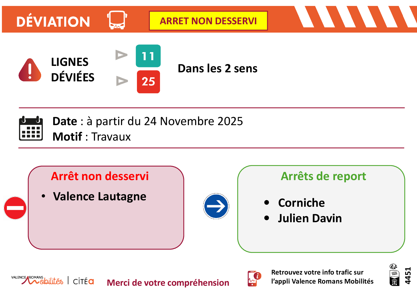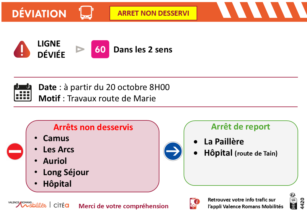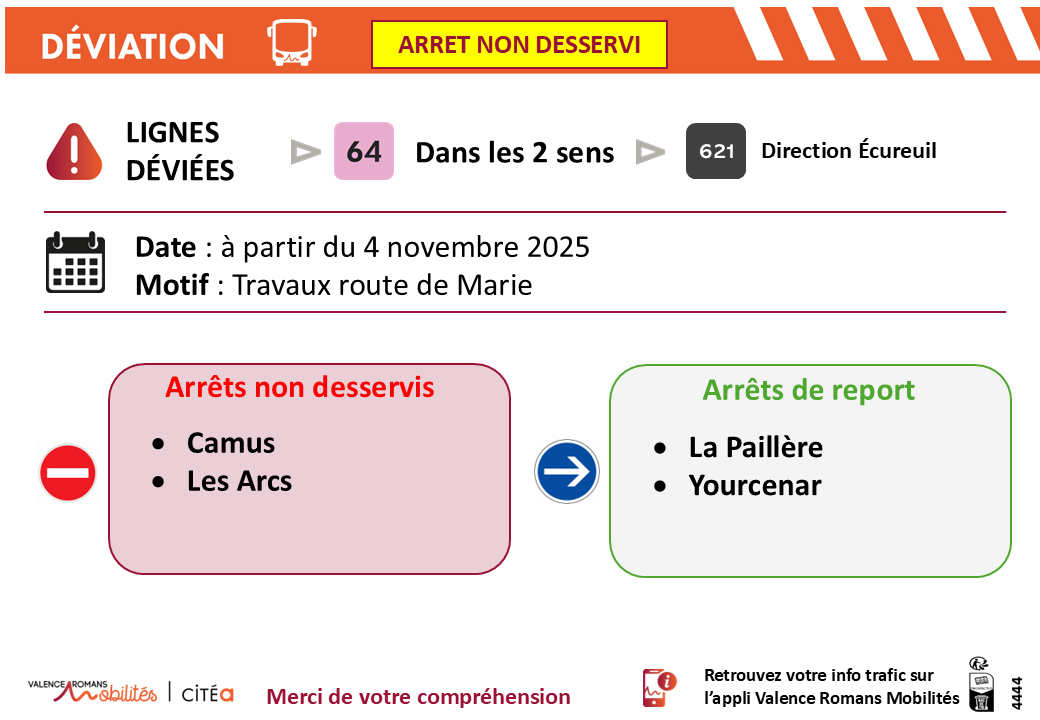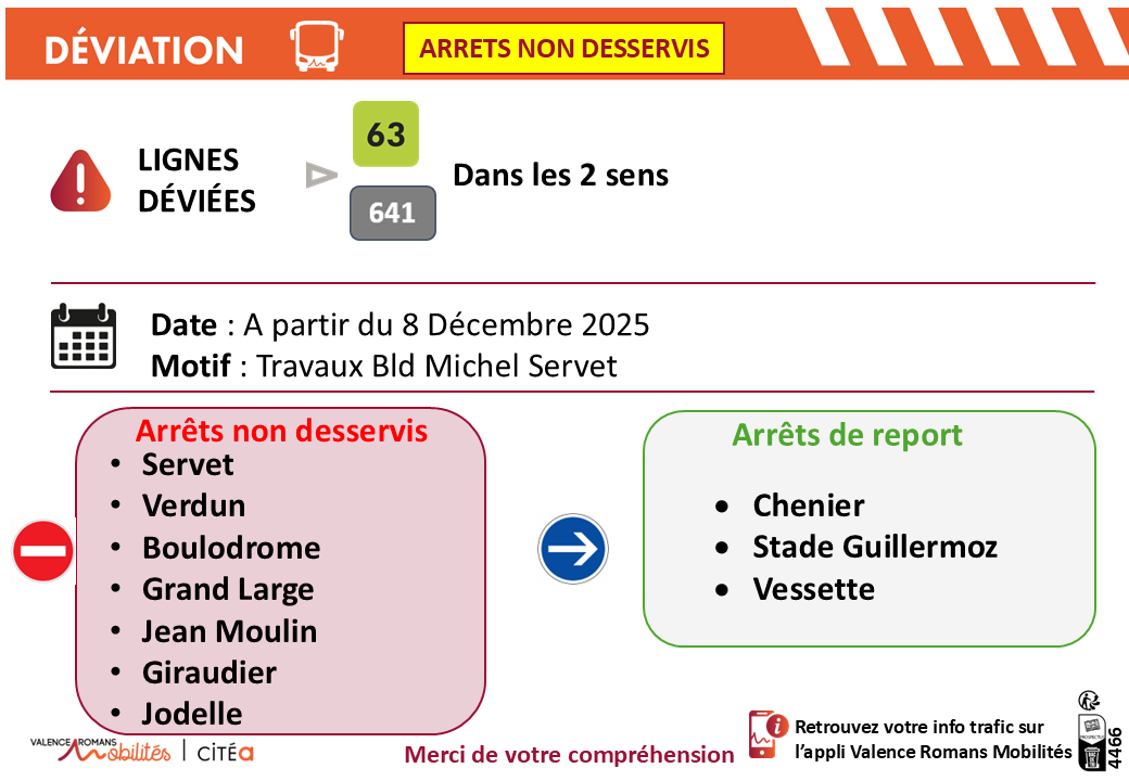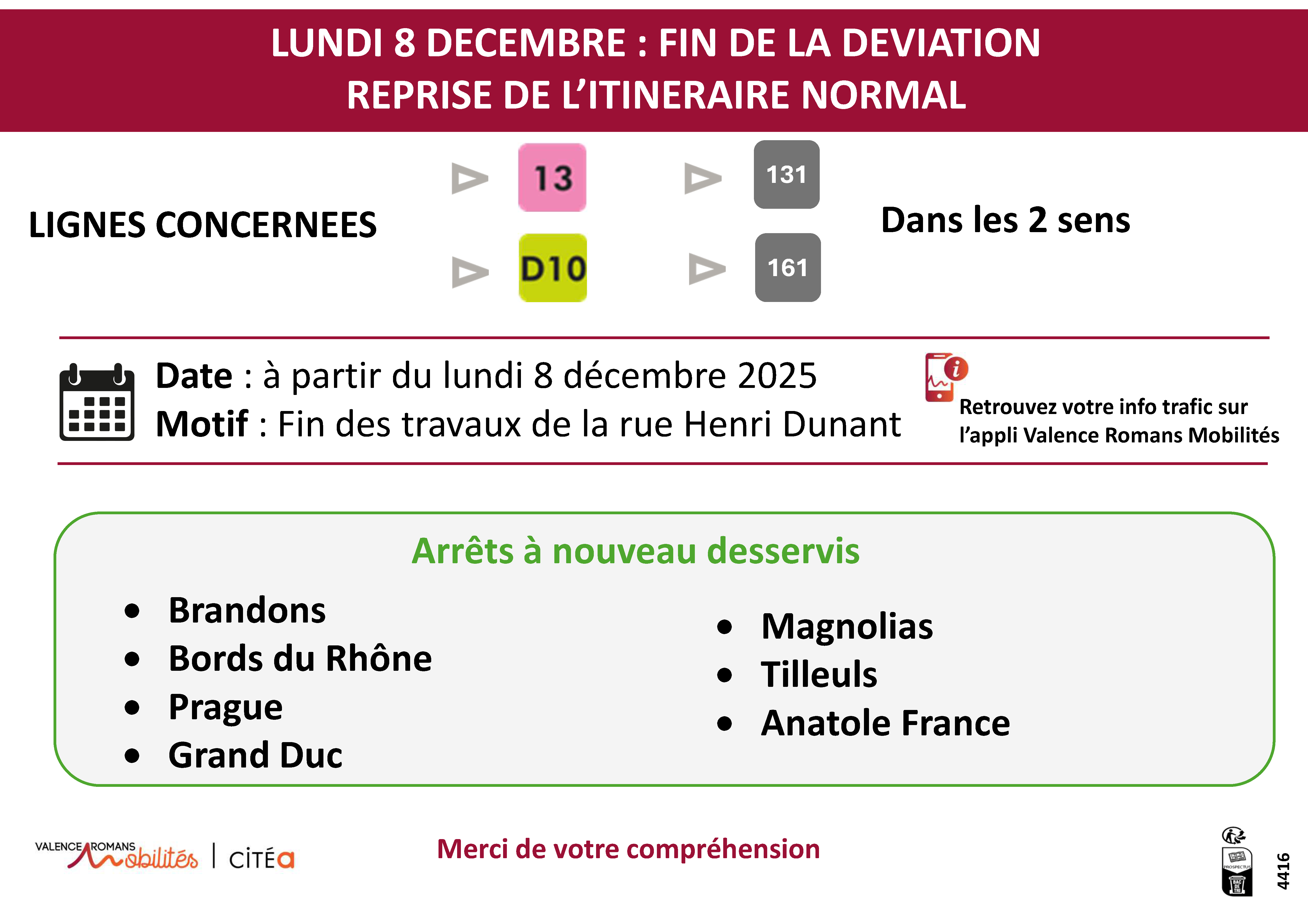 Fin de la déviation : Les bus reprendront leur itinéraire normal le lundi 8 décembre 2025.